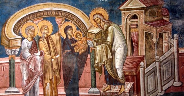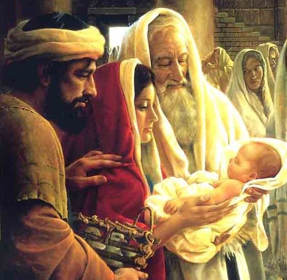 Исполняя обычай, родители Иисуса принесли на сороковой день после рождения, чтобы посвятить Богу. А для жертвоприношения были подготовлены птенцы голубей. Когда же старец Симеон взял на руки младенца, то к нему пришло откровение, что, наконец, пророчество, которого ждал весь народ Израиля, исполнилось. Тогда он произнес: «Ныне отпускаешь раба Твоего, Владыко, по слову Твоему, с миром, ибо видели очи мои спасение Твое, которое Ты уготовал пред лицем всех народов, свет к просвещению язычников и славу народа Твоего Израиля» (Лк 2:29-32).