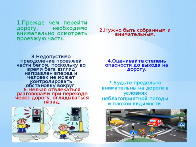 6.Нельзя отвлекаться разговорами при переходе через дорогу, оглядываться назад.