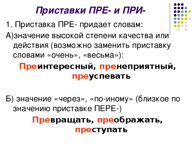 Приставки ПРЕ- и ПРИ-