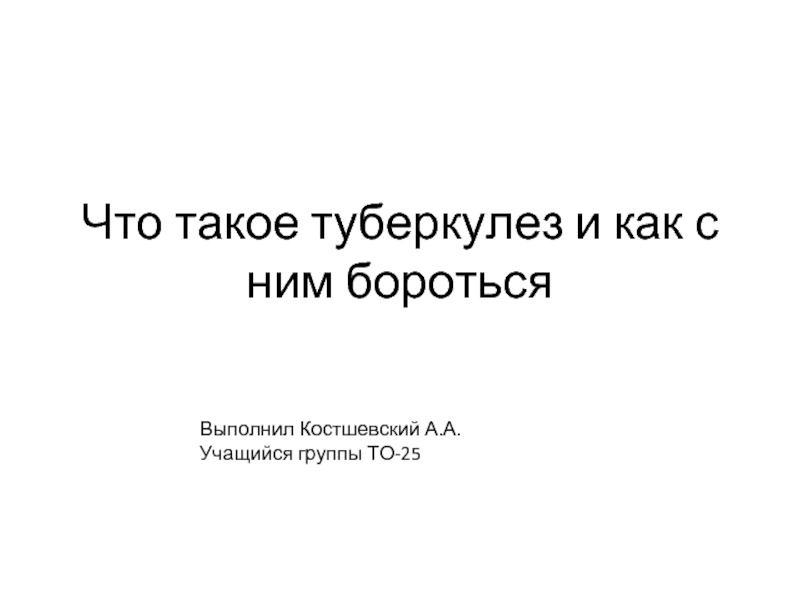 Презентация на тему Презентация на тему Что такое туберкулез и как с ним бороться, предмет презентации: Медицина. Этот материал содержит 10 слайдов. Красочные слайды и илюстрации помогут Вам заинтересовать свою аудиторию. Для просмотра воспользуйтесь проигрывателем, если материал оказался полезным для Вас - поделитесь им с друзьями с помощью социальных кнопок и добавьте наш сайт презентаций ThePresentation.ru в закладки!