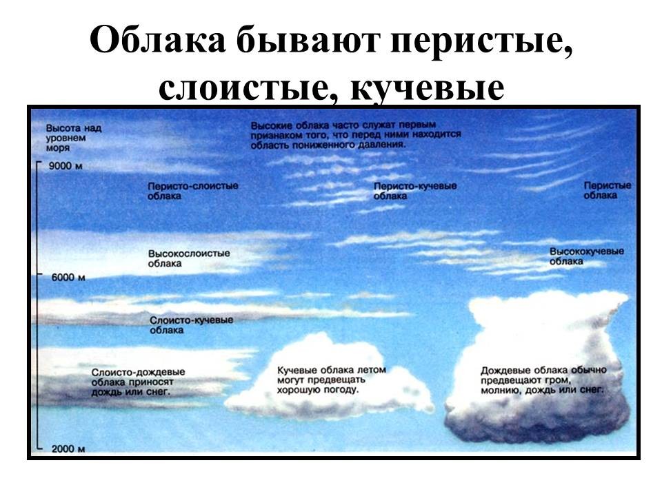 Погода подчиняется строгим правилам закономерности. Для каждой погоды характерна своя совокупность признаков. Обычно они тесно связаны между собой. Например, летом, если понижается давление воздуха, то понижается температура, повышается влажность, усиливается ветер. Что является следствием? (Дождь.)