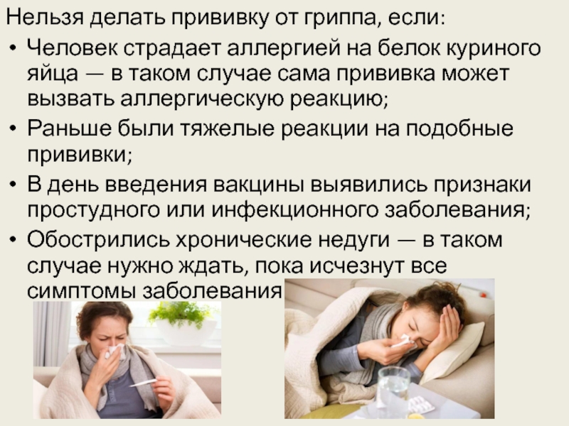 Нельзя делать прививку от гриппа, если: