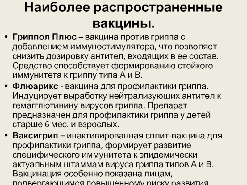 Наиболее распространенные вакцины.
