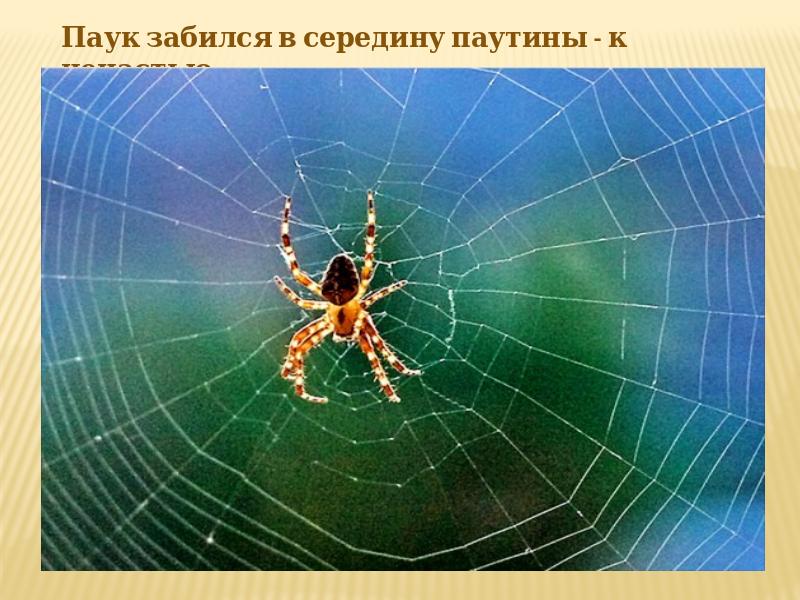 Паук забился в середину паутины - к ненастью