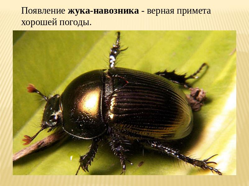 Появление жука-навозника - верная примета хорошей погоды.