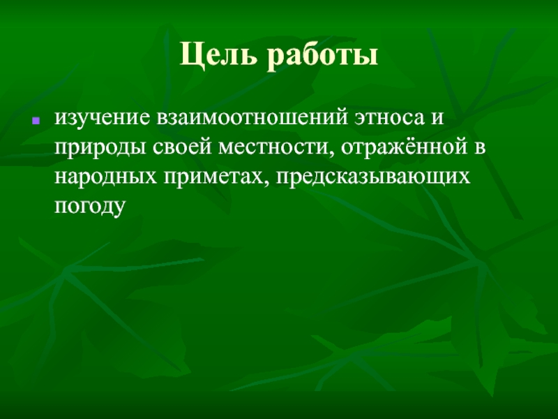 изучение взаимоотношений этноса и природы своей местности, отражённой в народных приметах, предсказывающих погоду