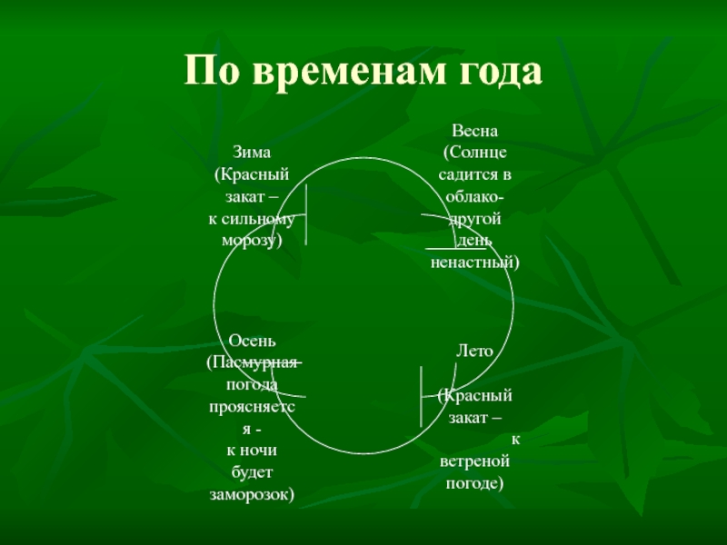 Презентация на тему Народные приметы о погоде, предмет презентации: Разное. Этот материал содержит 12 слайдов. Красочные слайды и илюстрации помогут Вам заинтересовать свою аудиторию. Для просмотра воспользуйтесь проигрывателем, если материал оказался полезным для Вас - поделитесь им с друзьями с помощью социальных кнопок и добавьте наш сайт презентаций ThePresentation.ru в закладки!