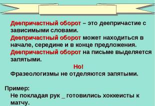Деепричастный оборот, знаки препинания при деепричастном обороте давно стали неотъемлемой частью изучения программы русского языка, проходить которую начинают еще в средней школе. Итак, а что же такое деепричастный оборот?