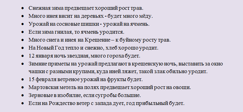 В этой статье описаны народные зимние приметы на урожай, весну, лето.