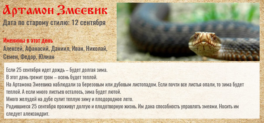 В Змеиный день к зиме готовились все, включая лесных обитателей. По народным поверьям, змеи в этот праздник уползали в свои норы для зимней спячки.