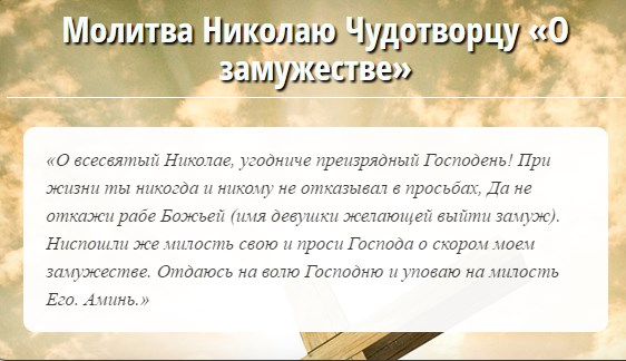 Ожидали этот день и молодые девушки, желающие вступить в брак. Считалось, что молитва этому святому о благополучном браке одна из самых сильных, потому девушки и молились Николаю о том, чтоб послал вторую половину.