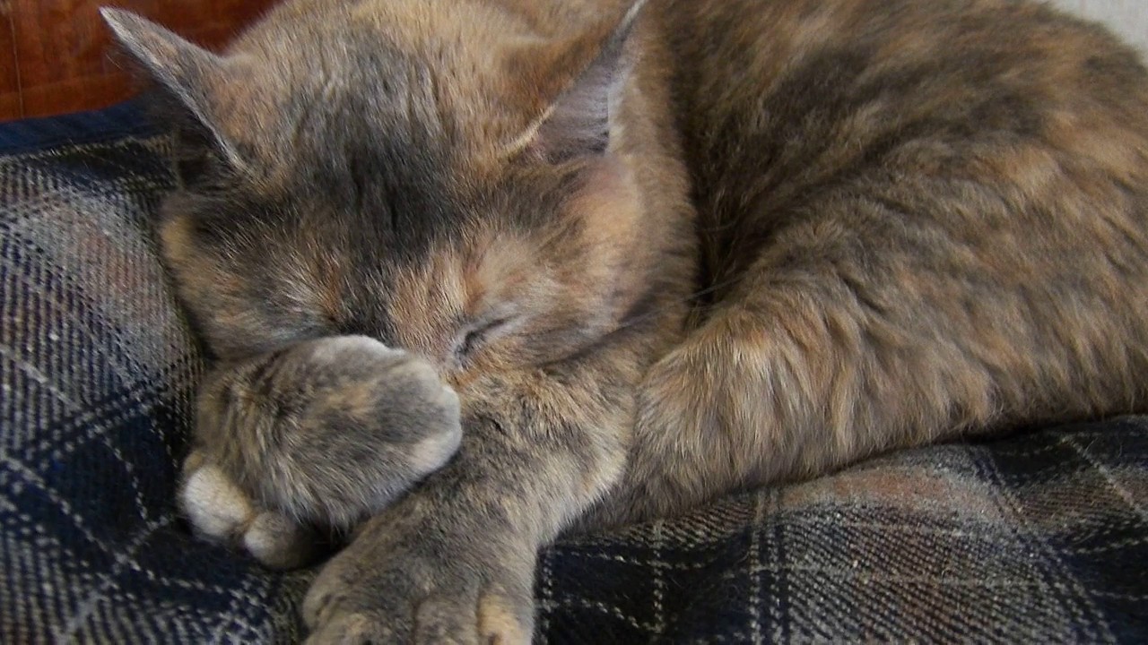 Кошка свернулась в клубок на печи, на мягкой подстилке к морозу, холоду.