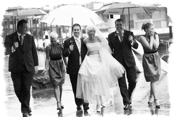 Свадебные приметы в дождьМногие расстраиваются, когда на свадьбу идет дождь. На первый взгляд — это действительно, не очень приятное обстоятельство, которое может нарушить планы. Но на самом деле дождь на свадьбу – это очень хороший знак. В древности дождь считался символом успешных урожаев. А урожай — это всегда достаток. Также считается хорошим знаком снег. Если день свадьбы совпал со снегопадом, то у будущей семьи всегда будет достаток. А вот ветер в свадьбу уже является тревожным колокольчиком. Считается, если на свадьбе сильный ветер, то брак будет ветреным, в вот здесь иное мнение. То же самое касается и бури.