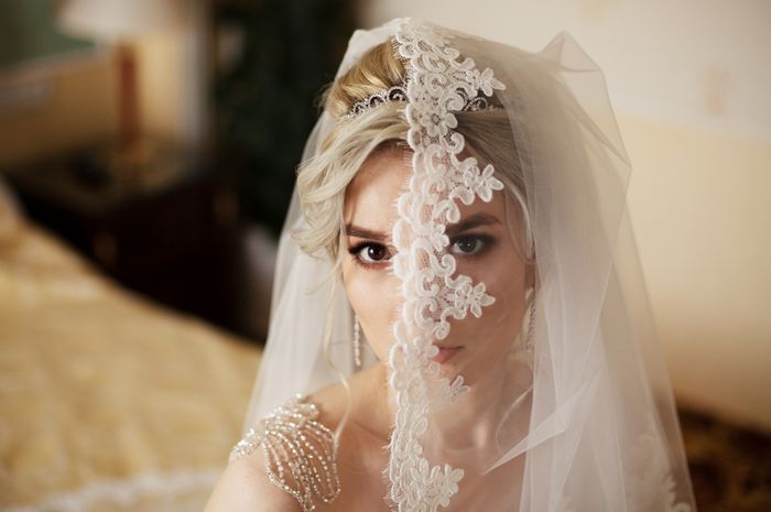 9. При выходе из дома на венчание/регистрацию желательно, чтобы на невесте была вуаль от сглаза. Когда она войдет в Дом торжеств или в церковь, при желании вуаль можно откинуть.
