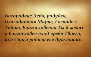 «Собрался весь православный люд у ворот Божьего храма, встречает Божью Матерь с ее младенцем - Иисусом Христом. Прославляют они их. Поклоняюсь и я им низко до земли. Нашепчу я сыну Божьему свое желание. Сбудется оно также, как и люд мирской встречал Святых. Аминь».
