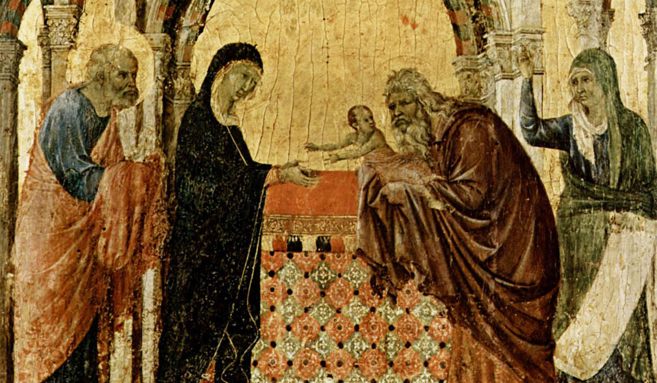 Данные слова легли в основу иконографии образа Богородицы «Умягчение злых сердец». Тут же, в храме, была благочестивая вдова Анна Пророчица, восьмидесяти четырёх лет, служившая Богу постом и молитвой день и ночь все долгие годы своего вдовства. И она узнала Спасителя и, подошедши, славила Господа и говорила о Нём всем в Иерусалиме.