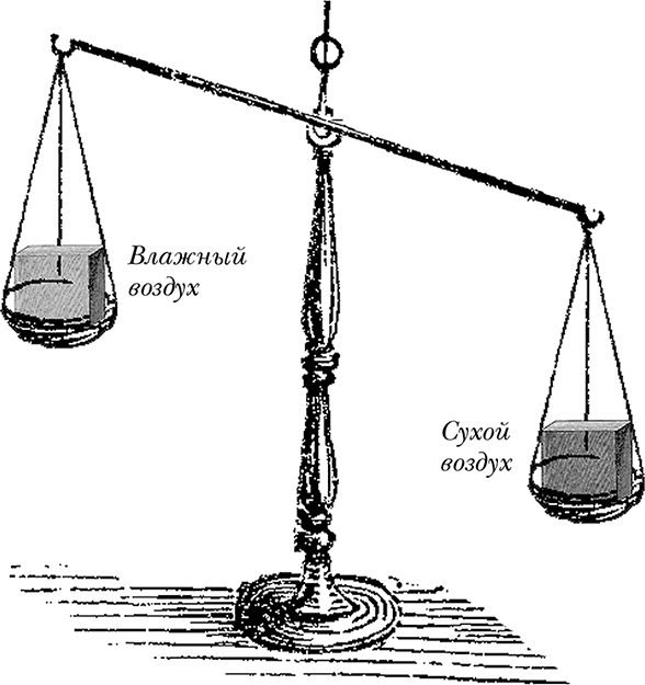 Кстати, раз влажный воздух легче, то этим можно объяснить уменьшение атмосферного давления перед дождем. Ведь оно обуславливается тяжестью столба воздуха, нависающего над нами. Понижением давления объясняется чувствительность суставов, зубов, головные боли, сонливость перед дождем. Во всем виновато давление!