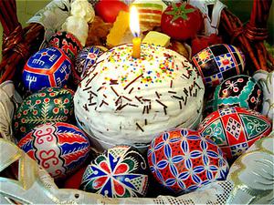 Праздник Пасхи начинается в субботу. Спать в пасхальную ночь не принято. После торжественной службы и прославления Христа священник освящает все, что миряне принесли в своих пасхальных корзинках.