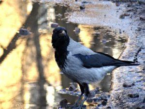 Ворона чистит перья, ходит с открытым клювом или купается — к дождю. Если птицы начали купаться в лужах 29 марта, скоро будет тепло.