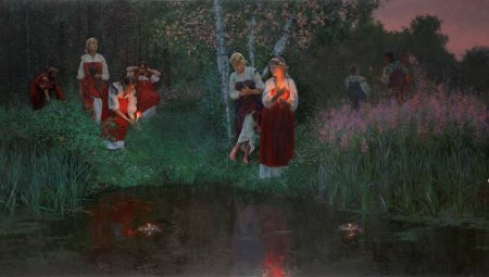 Народный календарь, приметы которого до сих пор соблюдаются многими, продолжает небезызвестный праздник Иван Купала. Народные гуляния проходили с 6 по 7 июля и напрямую связывались с Для обрядов, которые проводились в этот день, использовались вода, травы и огонь. В это время принято было разжигать костёр и прыгать через него, водить хороводы, петь песни, купаться в озере, гадать и плести венки.