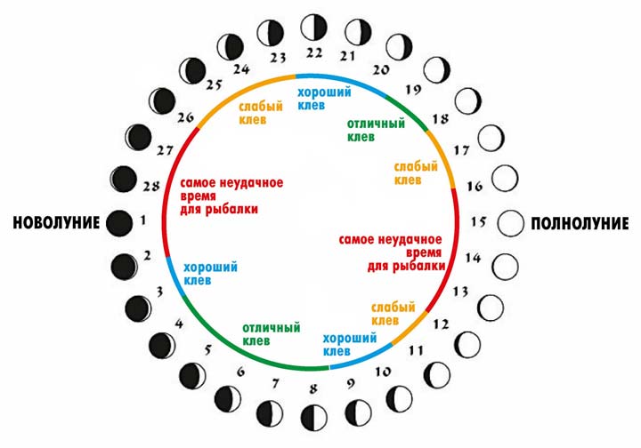 В последнее время много проводится исследований, связанных с воздействием Луны на прогноз клева рыбы. Традиционно считается, что наш естественный спутник оказывает самое непосредственное влияние на клев рыбы. Рыболовы старой закваски утверждают, что пиковые фазы Луны (полнолуние и новолуние) — наихудшее время для ловли любой рыбы. В то же время растущая или убывающая Луна благоприятствуют усилению клева рыбы.