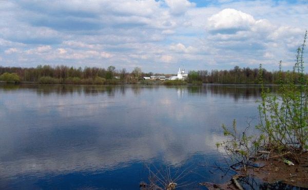 Устье реки Троца. После Заволжья необходимо ехать по главной дороге и после моста реки Юг на развилке повернуть направо, через 8,5 километров покажется устье реки.