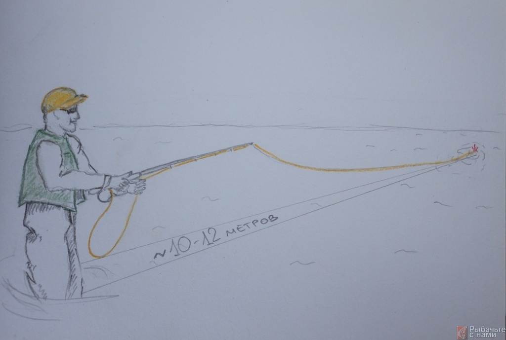 Вам кажется, что освоить заброс яркого шнура крайне сложно? Это не так. Начинайте с дистанции, равной примерно трем длинам вашего удилища, и не стремитесь закинуть далеко. Такого (и даже меньшего!) расстояния вам хватит для большинства рыболовных ситуаций. Я не ошибся: 7–12 м — это дистанция для ловли нахлыстом в обычных условиях, с которых вам и следует начинать.