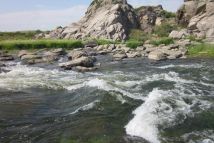 Более-менее приглубые участки сменяются совсем мелкими… Дно видно по всей ширине реки. В самом глубоком месте у обрыва канава глубиной не более 1м, по всей остальной ширине 30-50см глубины. Ну, какая тут может быть рыба?! Разве только зоркий жерех проскочит где-то, насмехаясь над нашими попытками поймать его.