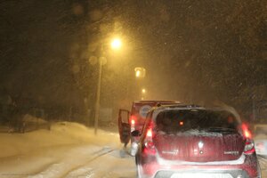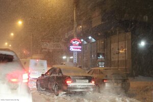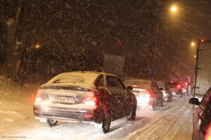 Таганрогское шоссе стало в начале перехода с узкой части на широкую. Пробка есть, но немного двигалась. За 45 минут удалось доехать до Оганова. Решил повернуть обратно, и в сторону северного не ехать. От Оганова до Вавилова ехал с 21-30 до 22-30. Всё стоит, люди идут, снежок, ветерок, забитые снегом и льдом дворники на машине. Сначала думал повернуть в сторону РГУПСа, но глядя на то, что если в сторону северного - хоть какое-то движение есть, а в сторону центра всё стоит и не двигается вообще - решаю по Вавилова пробираться обратно, на Военвед.