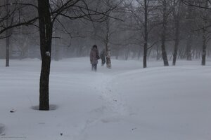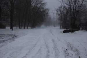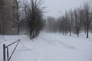 339-я Стрелковая дивизия. Есть следы снеготехники, но снега от этого не меньше. Площадь 339-й - большой трактор навалил кучу высотой наверно метров 5. Огромная белая скала снега!