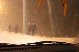 Помимо прочего пока стоял в пробке увидел массу людей направляющихся к своим жилищам пешком со всех концов города. Кто-то шел тяжело, неторопливо, а некоторые наоборот на позитиве, радуясь созерцанию такого редкого по масштабности для наших краёв шквала. Снегом нас засыпает стабильно 1-2 раза в год, но чтобы так - я за всю свою жизнь не припомню такого.