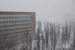 Т.к. здание, в котором я работаю находится на пустыре - дороги перед зданием оказались абсолютно чистые. Наш, прошлонедельный ледок собственной персоной. Но уже в 1 метре от поворота - метровые сугробы, низовая метель и плохая видимость! Со всех сторон здание окружено обширными метровыми сугробами. Блокада!