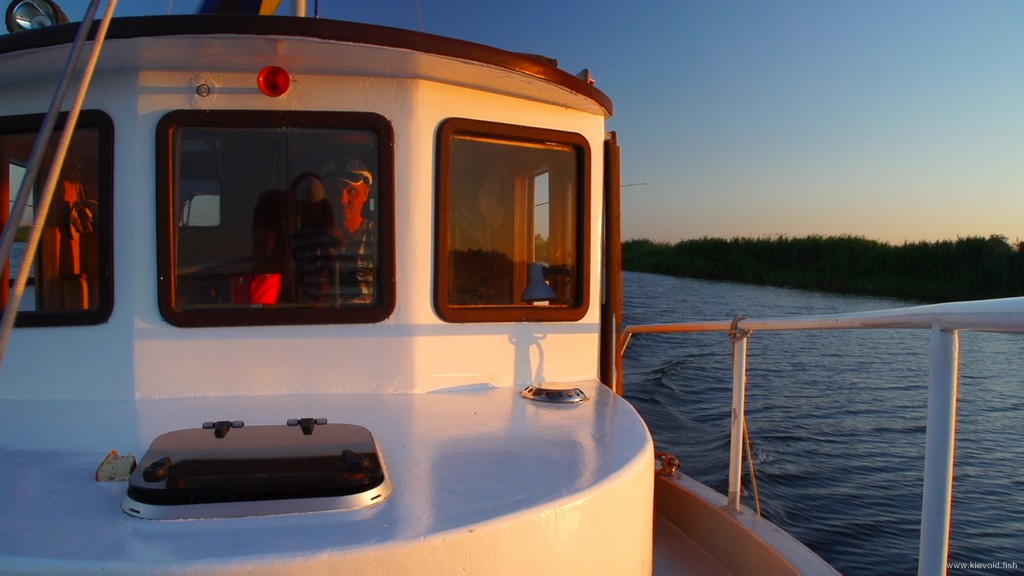 Наша яхта идет устойчиво, капитан Саша уверенно держит курс к намеченному для рыбалки месту лова карася.