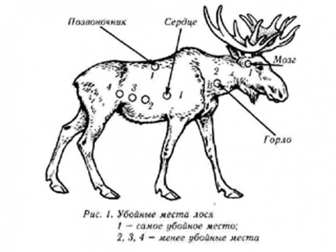 На фото видно, что лучше всего целиться в мозг или сердце — при их отказе животное погибает практически моментально. На бегу, к сожалению, это сделать непросто, поэтому вторым удачным вариантом считается попадание в позвоночник.