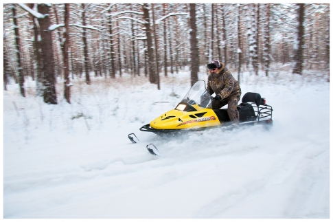 Поскольку выслеживание животного зачастую проходит очень долго, люди нашли способ сократить этот процесс — использовать снегоходы. Тем более, что так вы имеете возможность догнать лося — животное способно развивать скорость около 65 км/ч.