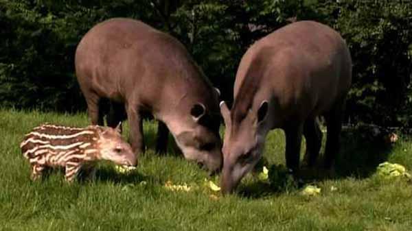 Бразильских тапиров почти всегда можно найти возле водоемов. Эти животные являются хорошими пловцами и ныряльщиками, но также они быстро передвигаются по земле даже по пересеченной и горной местности. Тапиры имеют темно-коричневый окрас. Их шерсть короткая, а от задней части шеи вниз растет гривой. Благодаря подвижной морде, тапир питается листьями, бутонами, побегами и небольшими ветвями, которые тапир обрывает деревьев, а также фруктами, травами и водными растениями. Самка рожает одного пятнисто-полосатого малыша после беременности, которая длиться от от 390 до 400 дней.