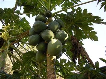 Листья папайи, в зависимости от их возраста, метода обработки и, собственно, самого рецепта используют для снижения высокого кровяного давления, лечения почечной инфекции, болей в желудке и проблем с кишечником. Плоды папайи используют при лечении грибковых заболеваний и стригущего лишая. Плоды папайи и её листья также содержат алкалоид карпаин, обладающий глистогонным действием, который в больших дозах может быть опасен. Плоды папайи не только по внешнему виду, но и по химическому составу очень близки к дыне. Они содержат глюкозу и фруктозу, органические кислоты, белки, клетчатку, бета-каротин, витамины С, В1, В2, В5 и D. Минеральные вещества представлены калием, кальцием,фосфором, натрием, железом.