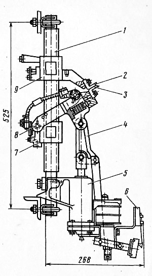 4 - тяга изоляционная; 5 - привод пневматический;