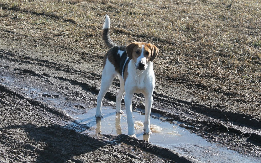 Охота с русской пегой гончей должна проходить в сухую погоду без ветра. Он мешает собаке выяснить направление гона, а дождь и сырость — взять след.