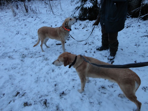 На первую нагонку рекомендуется брать собаку одну, без опытного «напарника». Не смотря на то, что так собака будет учиться быстрее и лучше, она может как измотаться, пытаясь держать ритм опытного пса, так и перенять его возможные пороки.