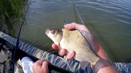 Во-первых, ловить нужно днём, когда заметно теплеет. В утренние и вечерние часы температура воды падает, и карась просто стоит, не интересуясь приманкой. В дневное время солнце хорошо прогревает мелководье, поэтому рыба становится активнее.
