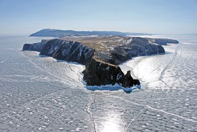 Зимой Байкал покрывается толстым и абсолютно прозрачным слоем льда. На нём встречаются причудливые и красивые наросты. Будьте осторожны на льду, лучше ходите по озеру с проводником. На ледяном покрывале могут быть малозаметные трещины и полыньи, куда может провалиться человек. Морозы на Байкале не кажутся суровыми, если смотреть только на температуру — до −15°C в январе и феврале. Но ощущение холода многократно усиливается во время метели. Также зимой на озере бывают туманы.