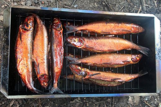 Признаюсь, что никогда не обращал внимания: свежий омуль и сиг, оказывается, пахнут… свежим огурцом. И если хотите полакомиться «огурчиками» прямо в «огороде», есть несколько блюд: икра под названием «Пятиминутка», расколотка, сагудай, рыба на рожнах, уха и жареха — выбирайте на вкус.