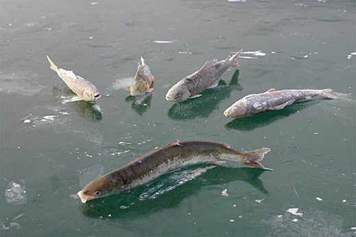 Сопровождающие рыбаков дети, жены и прочие вольные от рыбалки лица в диком восторге ползают вокруг, стараясь рассмотреть рыбу подо льдом и разглядывая причудливые тончайшие вуали трещин, пронизывающих толщу льда, где замерзшие бусинки пузырьков воздуха вытянулись в ожерелья, создавая свои неповторимые узоры. Все это похоже на заколдованную музыку, спрятанную в хрустальном льду.