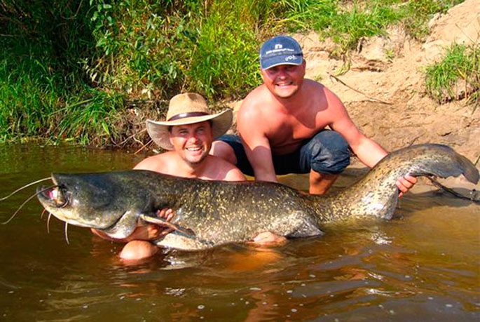 Отправляясь за сомом, лучше взять с собой помощника, тем более, если рыбалка осуществляется с лодки. Одному человеку, при поклевке крупной особи, трудно справиться с этим речным гигантом. Он способен перевернуть лодку или поломать снасти, тем более, что кому-то еще нужно и лодкой управлять.