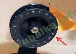 Для того чтоб зарядить нашу жерлицу, мы придерживая леску, стопорим катушку флажком. При поклевке, щука раскручивает мотовильце, и флажок высвобождается из защемления, сообщая нам о поклевке.