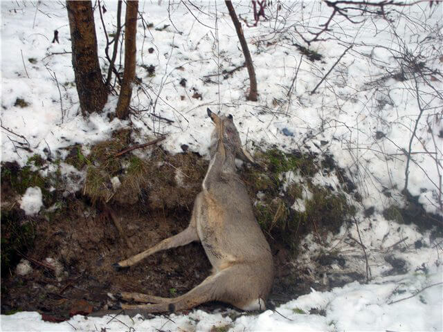 В противном случае у вас возникнут очень большие трудности при транспортировке косули. Оставляя добычу, необходимо обязательно перенести ее от места, где потрошили, и припорошить снегом. Вокруг туши не должно быть следов крови, иначе лесные хищники доберутся до вашей добычи.