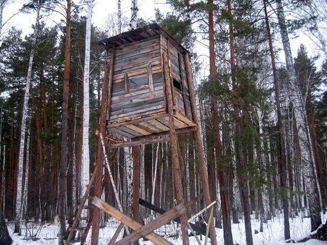 Размещение под вышкой регулярно обновляемой подкармливающей площадки - гарантия успешной охоты. Сооруженную конструкцию животное со временем воспринимает как естественную часть окружающего пейзажа, поэтому не испытывает страха во время подхода к ней.