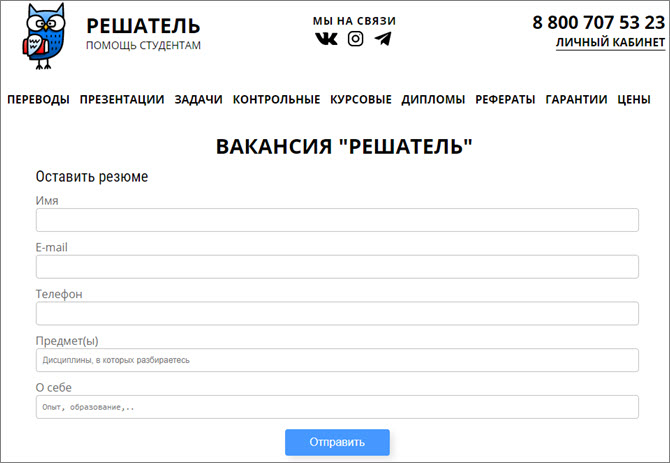Для того чтобы вступить в штат «reshaem.net», необходимо заполнить специальную форму. Ее можно найти в разделе «Сотрудничество». При возникновении вопросов можно обратиться в техническую поддержку сайта.