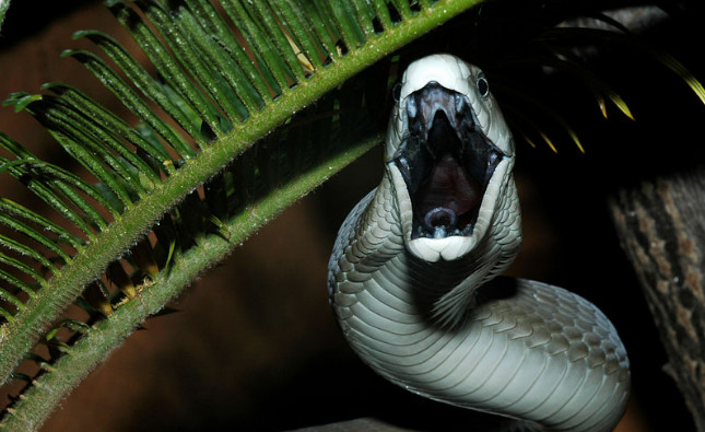 Свое название змея получила благодаря черной пасти, сама же она чаще всего темно-оливкового цвета. Обитает она в Африке, где является одной из самых ядовитых. В длину Мамба достигает до 2,7 метров, встречаются экземпляры до 5 метров. Укус такой змеи убивает человека за 20-30 минут.